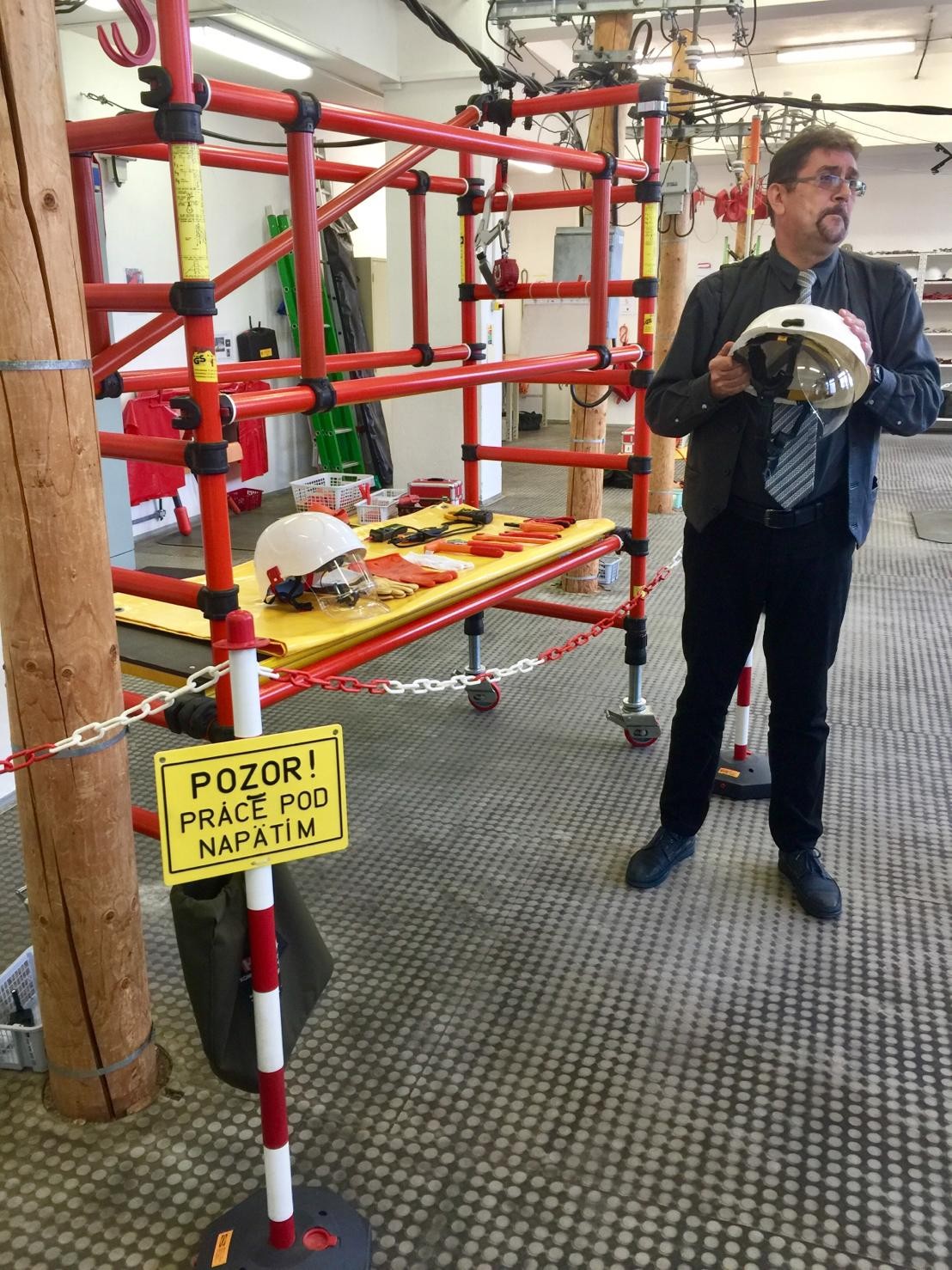 Odborníci a zástupcovia spoločnosti VUJE nás previedli i výcvikovým polygónom prác pod napätím, kde sme sa vďaka odbornému výkladu oboznámili s bezpečnostnými postupmi prác pri použití pomôcok zabezpečujúcich ochranu pred úrazom elektrickým prúdom a rôznymi inými zaujímavosťami.